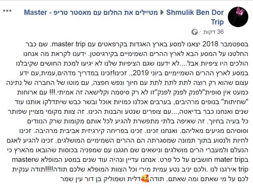 12. כל טיול עם מאסטר טריפ הוא "האחד והכי מיוחד" – מפני שאנחנו אוהבים את מה שאנחנו עושים ומאמינים שעושים באהבה או שלא עושים בכלל !
